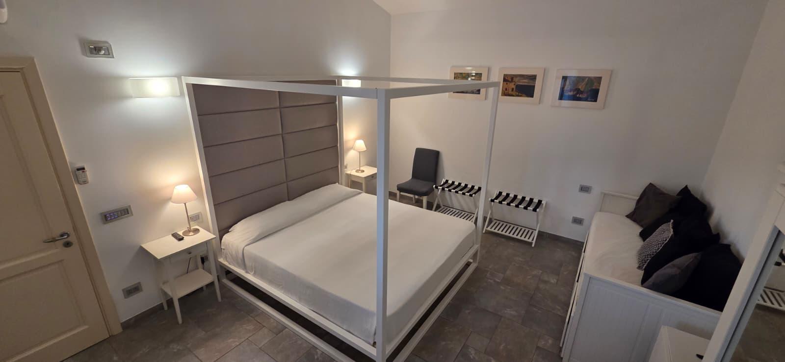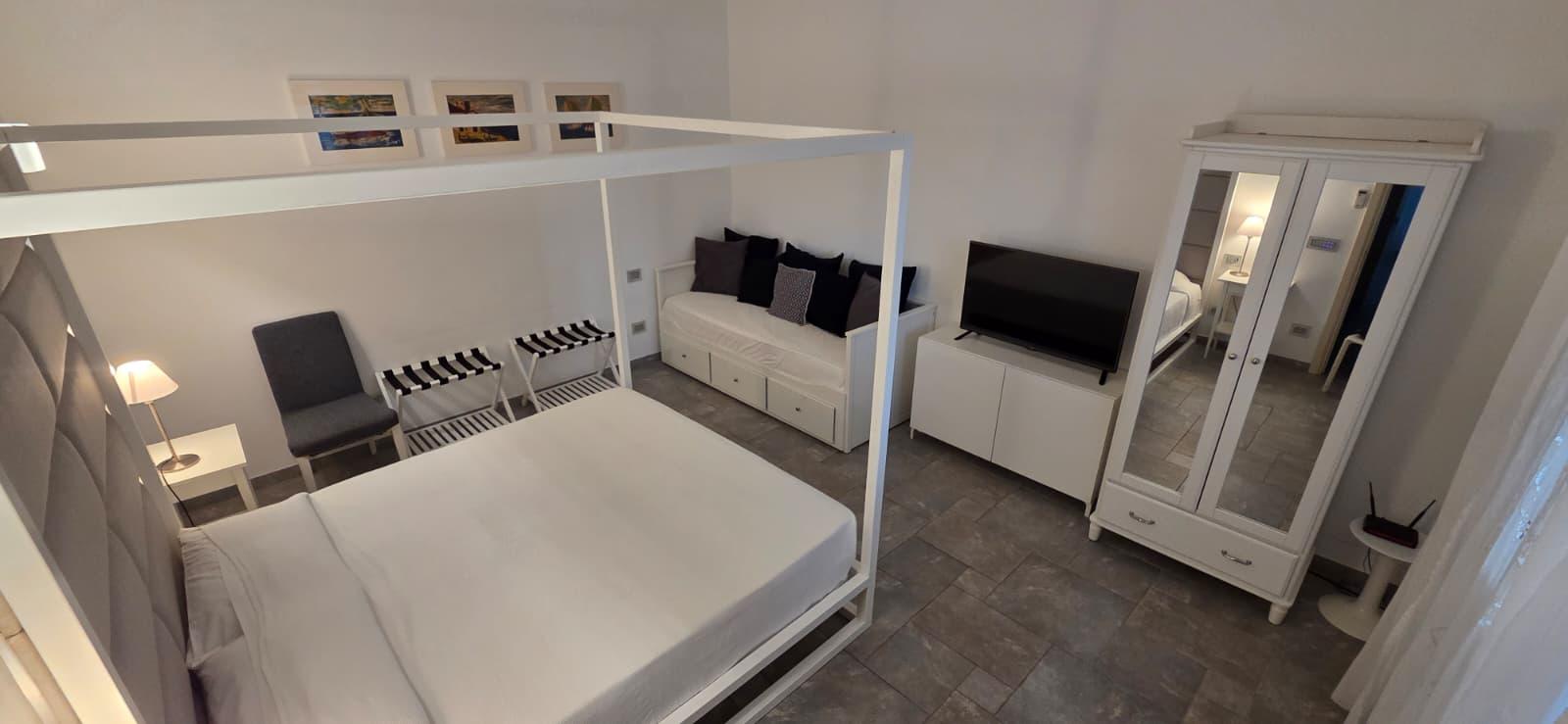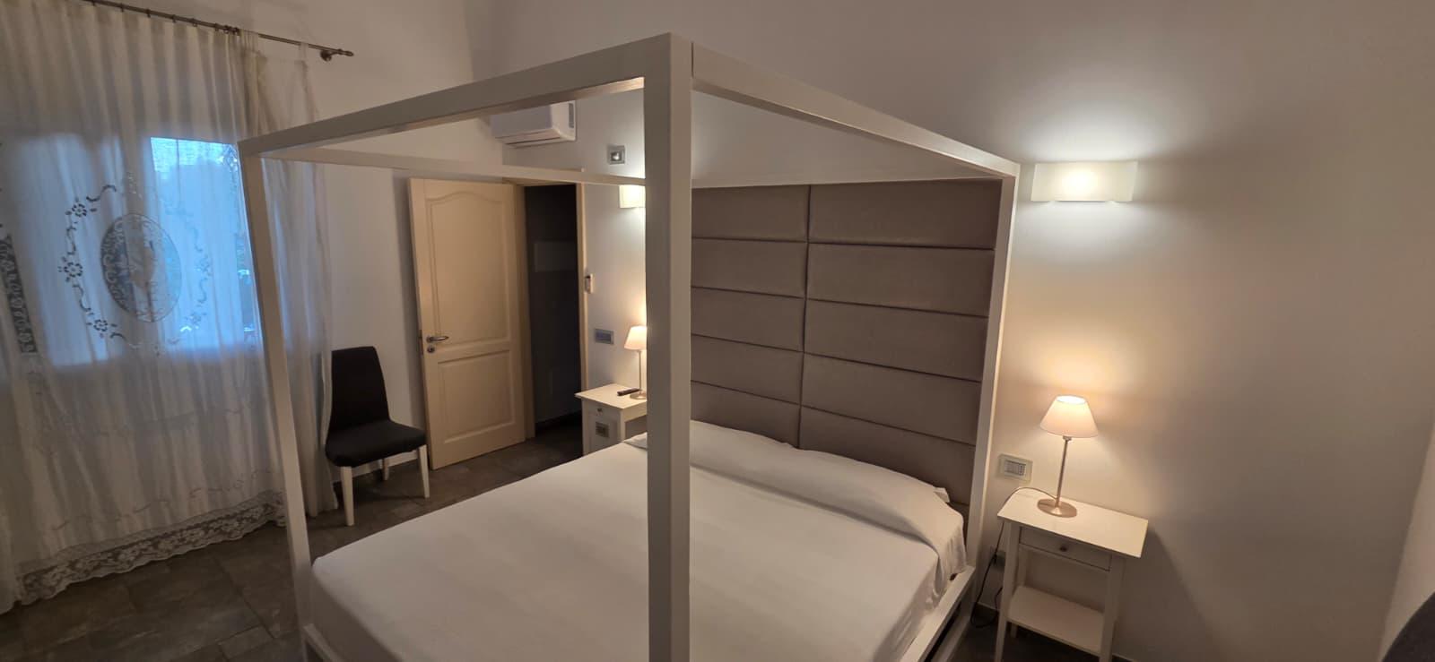 The villa is so organized inside. Immediately after the front door you find yourself in a hallway. On the right you go to the double bedroom, in front you go to the bathroom, on the left you go to the kitchen. To the left of the kitchen you go into the triple bedroom, consisting of a double and a single bed.